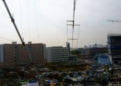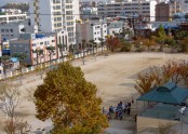 보수 작업후의 4엘레 큐비컬 쿼드 급전부와 인근 초등학교.