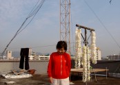 아파트베란다에 안테나를 설치한 장면입니다.