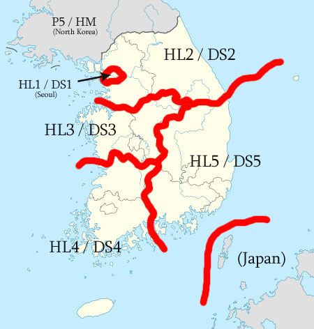 Republic of Korea(South Korea) assigns prefix separating numeral according to the following geographical location: